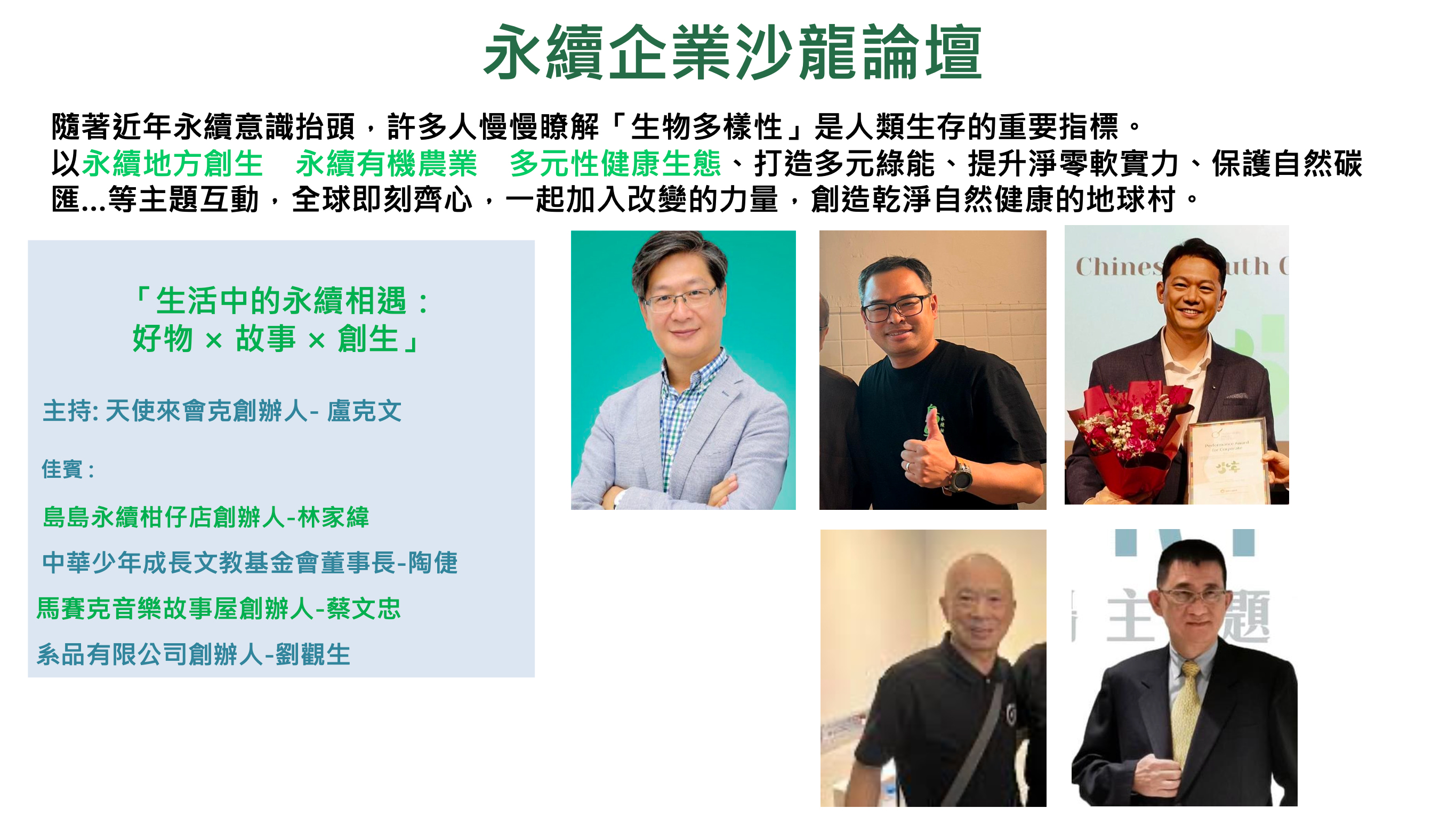 永續好夥伴一起參與2025自綠生活節,除了永續市集,還有永續論壇,邀您一起將永續成為日常。