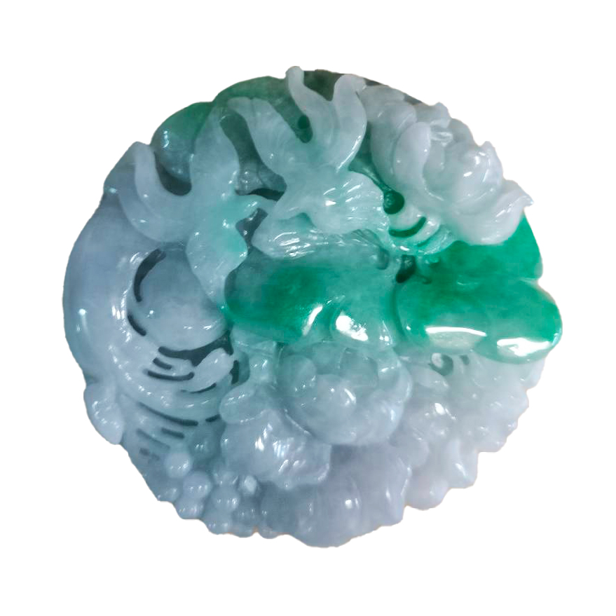 選用天然翡翠玉,色彩層次豐富,巧妙運用原石自帶的陽綠色澤進行巧雕,讓喜鵲與花卉栩栩如生。喜鵲自古被視為「報喜神」,結合盛開的花朵,寓意著「花開富貴」與「喜事連連」。雕工流暢且具備高度立體感,不論是配戴於身或是把玩欣賞,皆能感受翡翠獨有的溫潤靈性,是一件融合藝術美感與吉祥祈願的精緻工藝品。